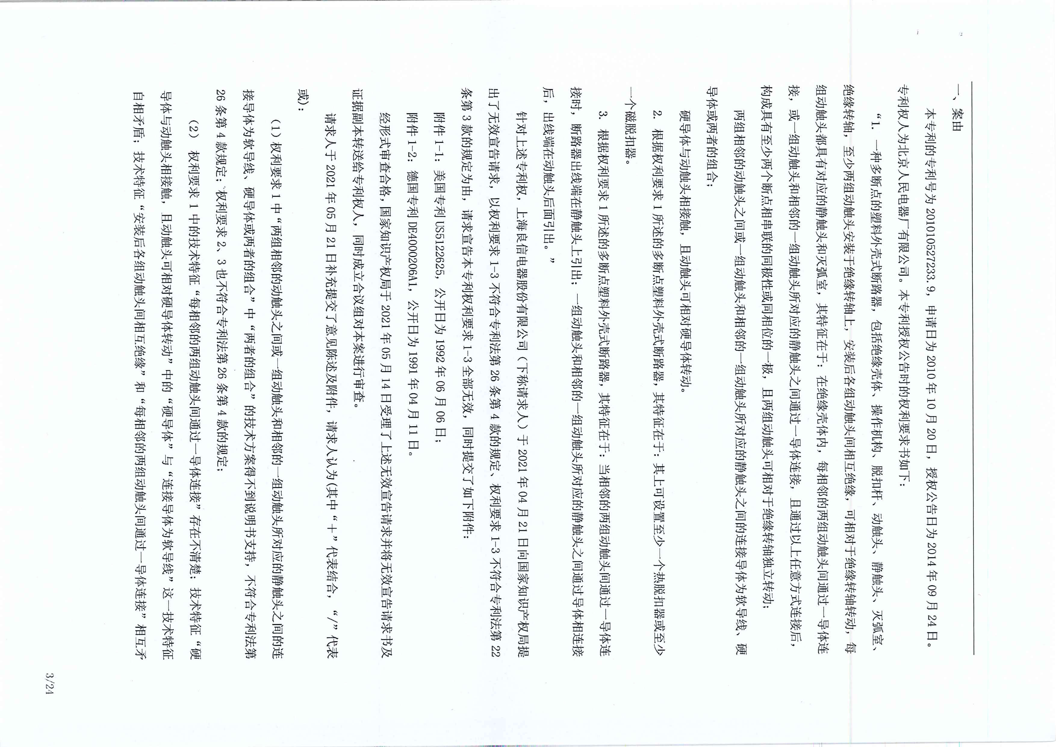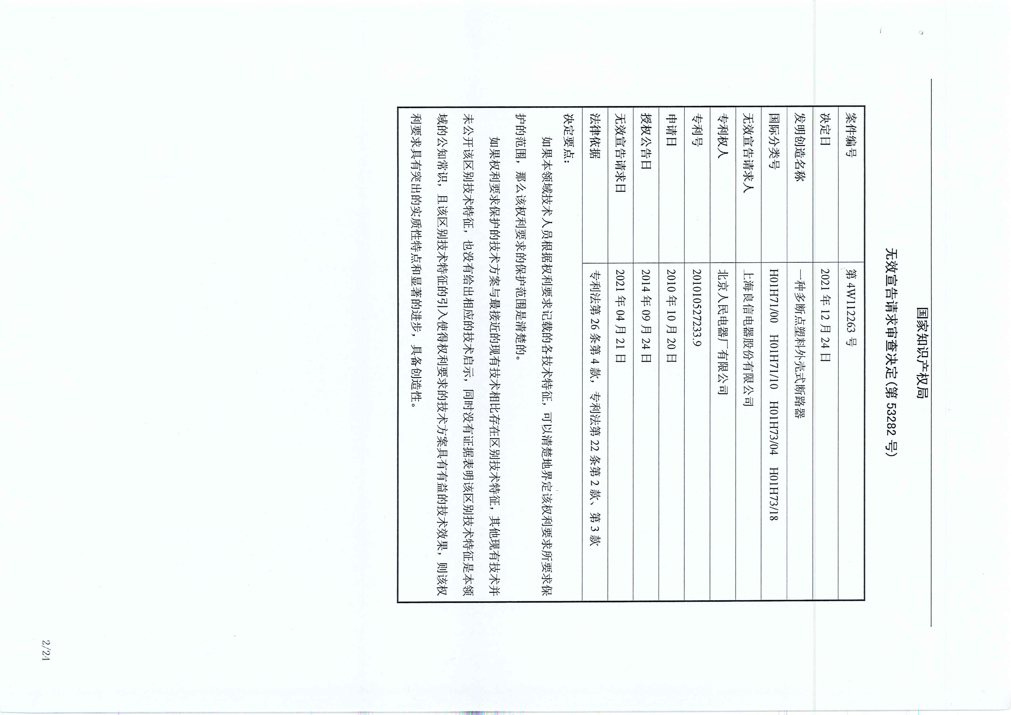 人民電器2010105272339無效宣告請求審查決定書-贏